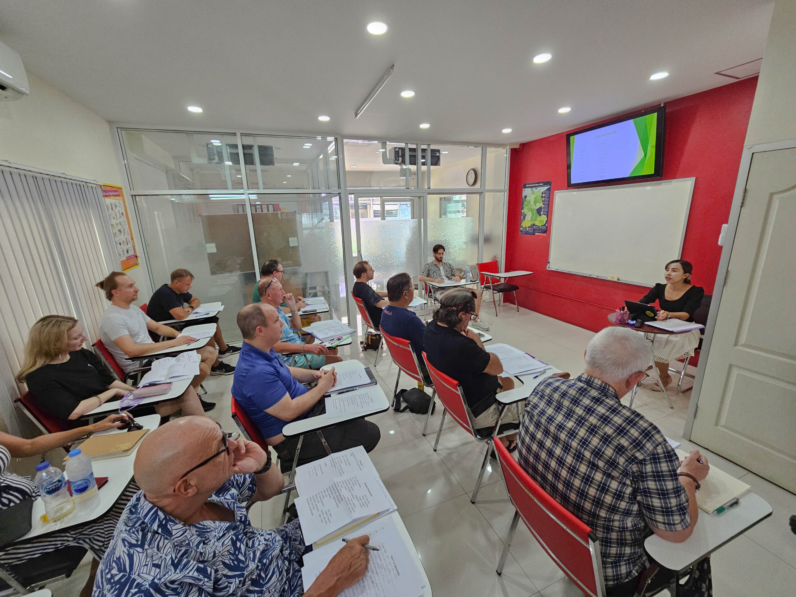 Learning Thai in a group setting offers a high-quality and dynamic experience where students can develop their language skills in an interactive and encouraging environment. Our small group sizes ensure that teachers can focus on both individual and group learning needs, allowing for a structured yet flexible approach to mastering the Thai language.